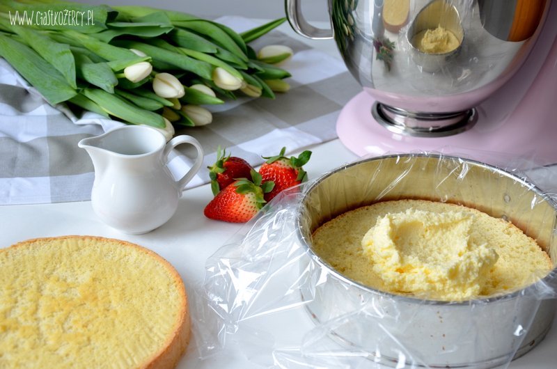 Biszkopt pieczemy według przepisu. Można zrobić to dzień wcześniej, żeby miał dużo czasu na ostygnięcie. Jak to zrobić możecie zobaczyć również na moim filmie.