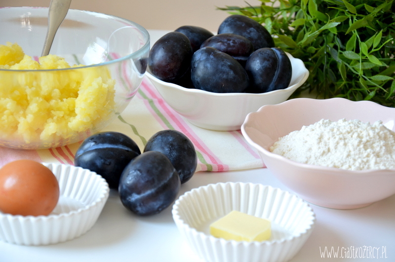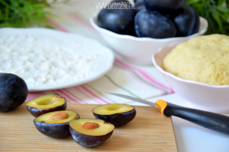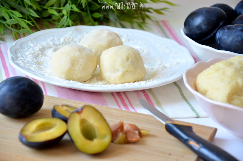 Śliwki myjemy, przekrawamy na połówki i drylujemy. Moje były wyjątkowo duże, więc zamiast całej śliwki, ulepiłam knedle z połówek.