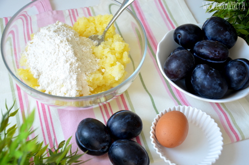 Ugotowane w osolonej wodzie ziemniaki przeciskamy przez praskę – im dokładniej to zrobimy tym gładsze będzie ciasto. Do jeszcze ciepłych ziemniaków dodajemy masło. Kiedy nieco przestygną dodajemy mąkę i jajko i wyrabiamy ciasto. Gotowe ciasto powinno mieć konsystencję miękkiej plasteliny.
