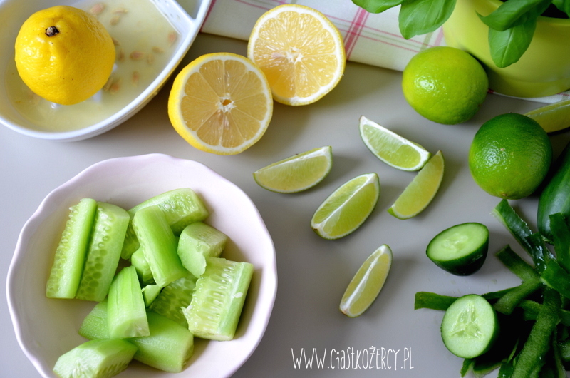 Mimo że oryginalną lemoniadę robi się z cytryn, orzeźwiające pyszne letnie napoje można zrobić z niemal każdego owocu. A nawet warzywa :) Dziś zatem lemoniada ogórkowa.