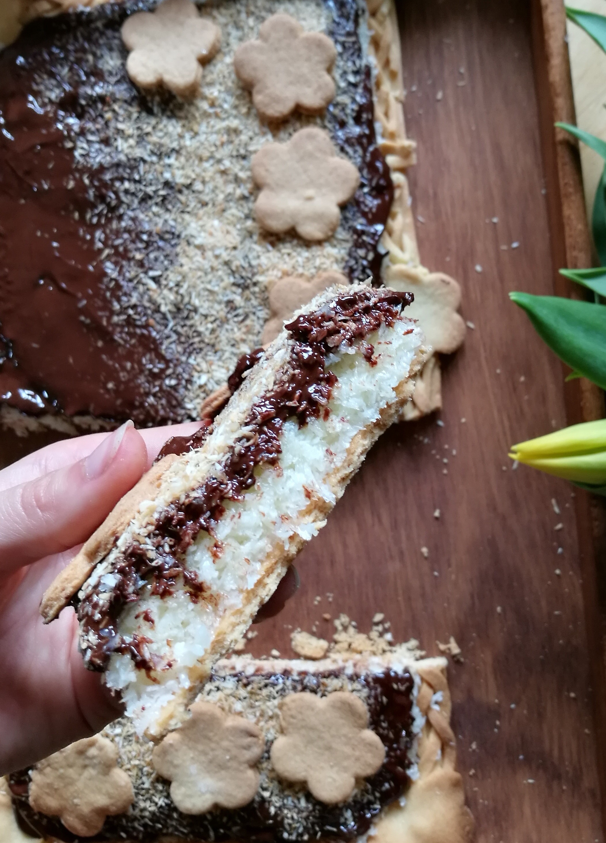Od jakiegoś już czasu jestem zakręcona na punkcie gastronomii, moim marzeniem jest założyc blog, a jeszcze bardziej własną cukiernię. Aż wstyd powiedzieć, że jest to mój pierwszy mazurek w życiu. Będę miała z nim wiele wspomnień i już dużo się nad nim napłakałam myśląc, że nie wyjdzie, ale ostatecznie jest nieziemski, a gdy mama powiedziała „mmm, kokosowy, taki jak lubię najbardziej” to już byłam w niebie. Także, dzielę się z wami tym przepisem, abyście i wy mogli sprawić radość innym, a sobie ciepło na serduszku.