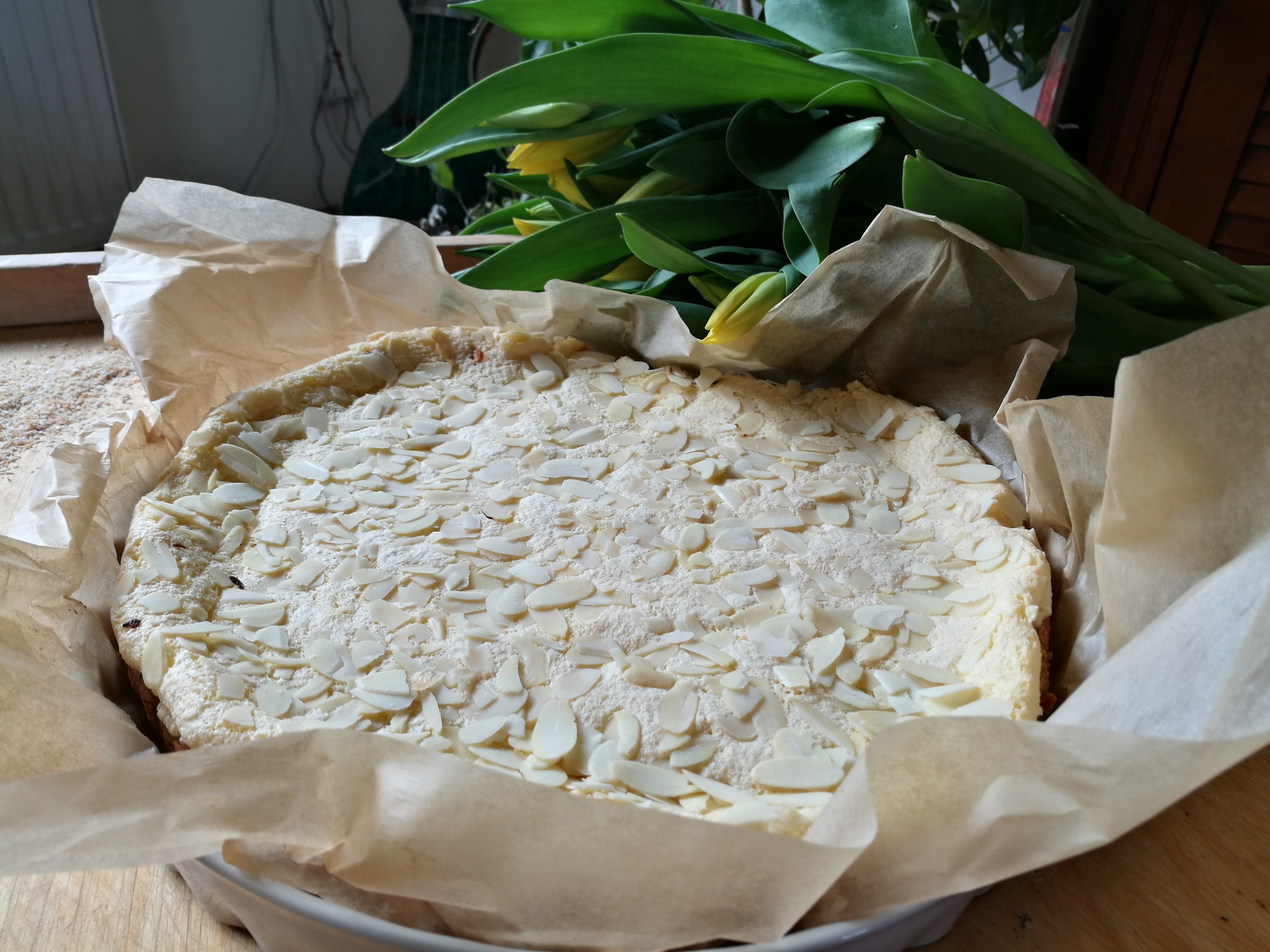 piekarnik do 180 stopni. Foremkę wyłożyłam papierem do pieczenia. Ciasto