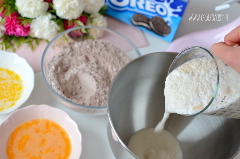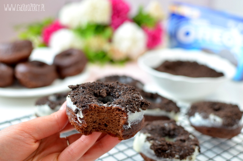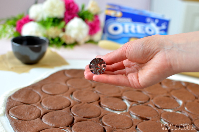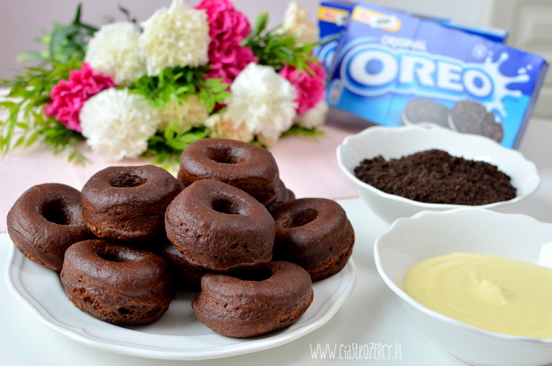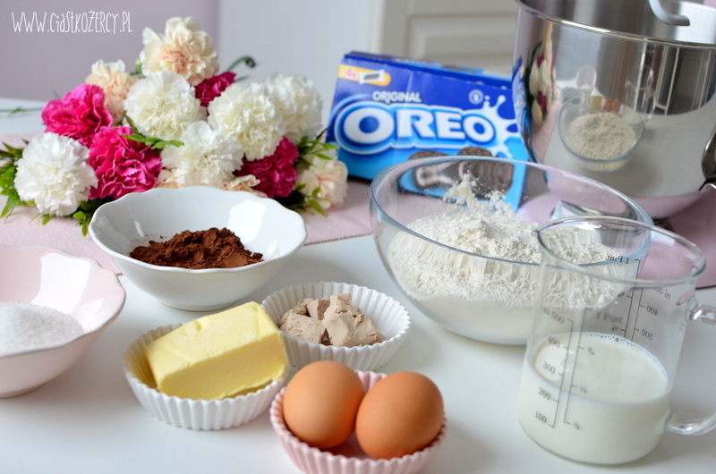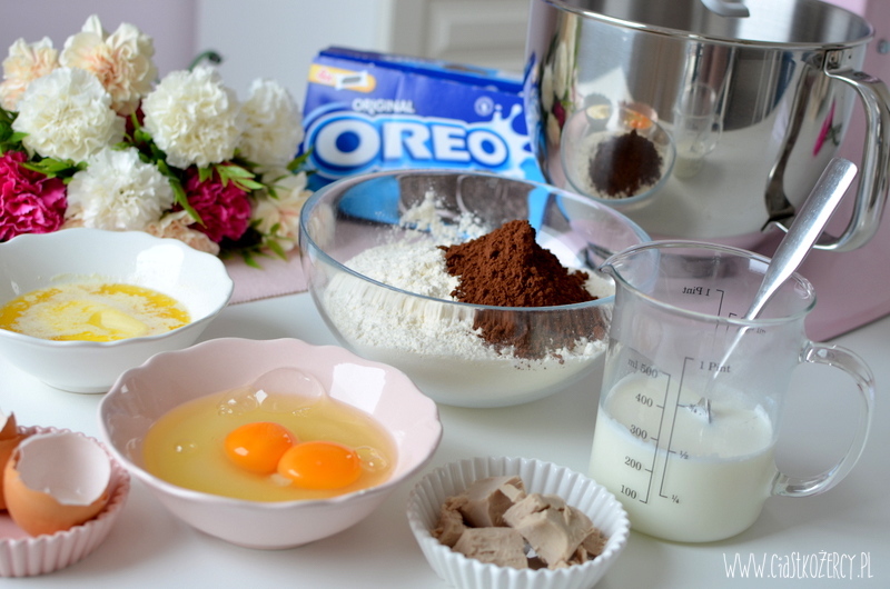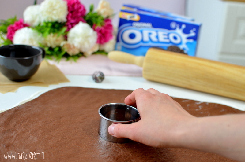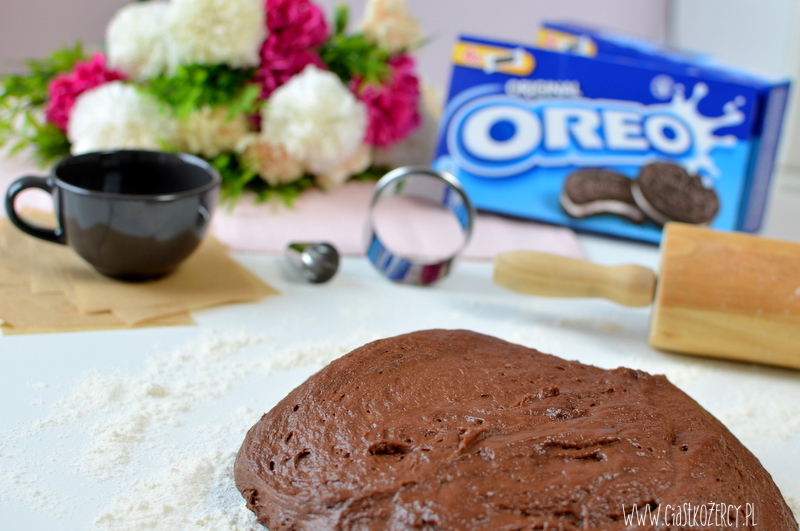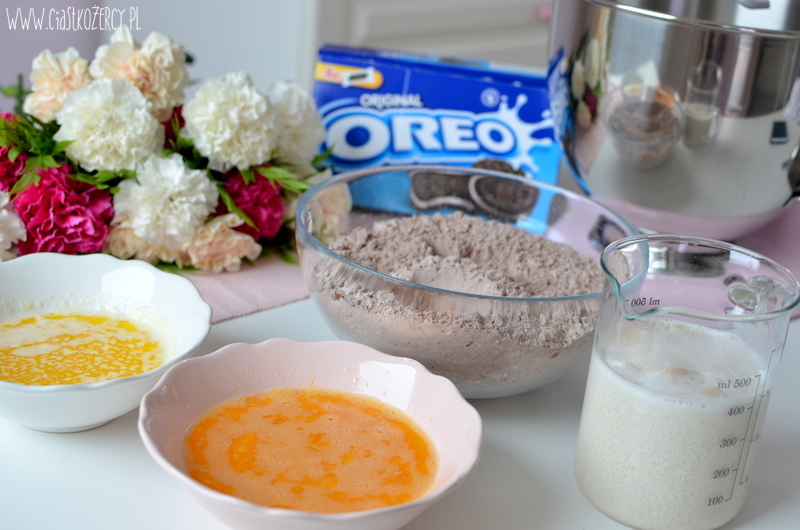 Jeśli choć raz w życiu zrobicie czekoladowe drożdżowe zaręczam Wam, że będziecie do niego wracać :) Na stronie takie przepisy można znaleźć np. tu na drożdżowy placek z jeżynami lub tu na pyszne rogale czekoladowe. Dziś czekoladowe pączki Oreo (smażone na głębokim oleju – mniam, mniam) z kremową polewą i posypką z ciasteczek Oreo. Z podanych proporji wyszło mi 40 pączków.