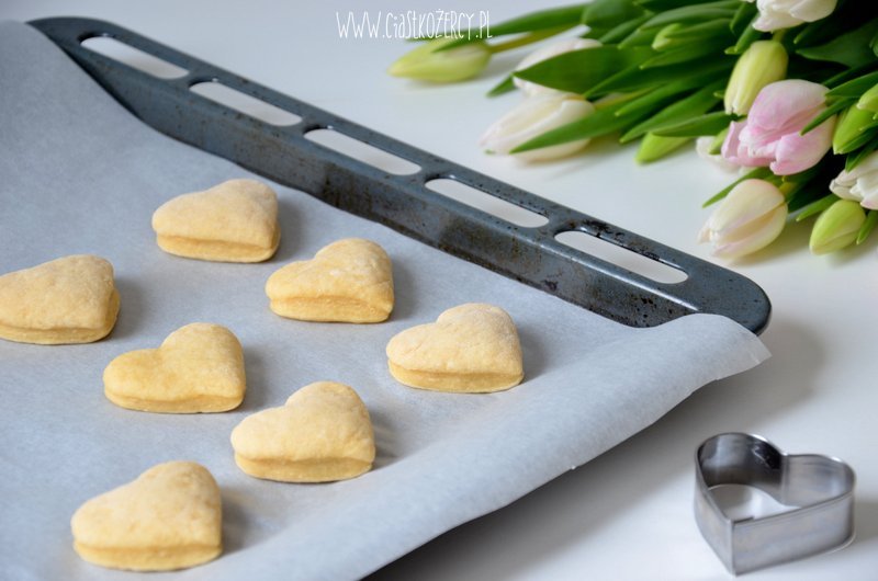 Wyciskamy na ciasto czekoladę (ilość zależy od wielkości foremki serduszka, czekolada nie może wypływać na brzegi pączka).