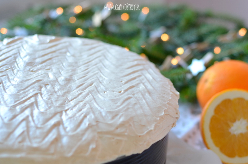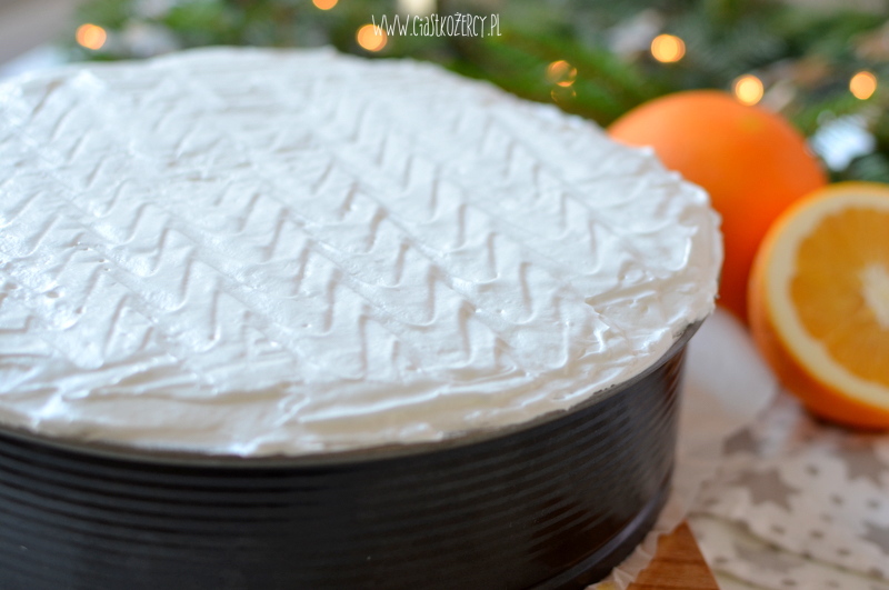 Rozsmarowujemy pianę na serniku i wyrównujemy szpatułką. Można dodatkowo zrobić wzorek. Do tego zadania dobrze sprawdzi się duży nóż z ząbkami do chleba.