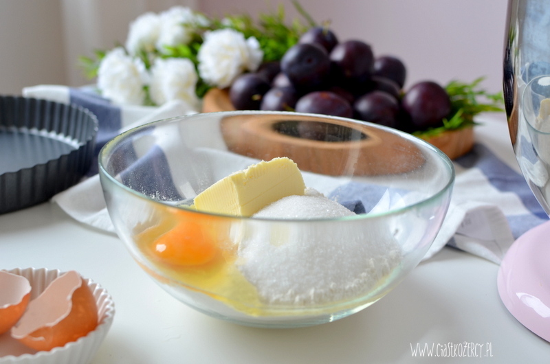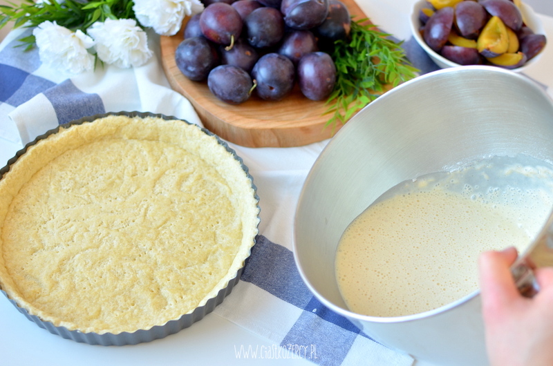 Układamy na cieście wydrylowane ćwiartki śliwek. Wkładamy do piekarnika na kolejne 30 minut, temp. 180 stopni.