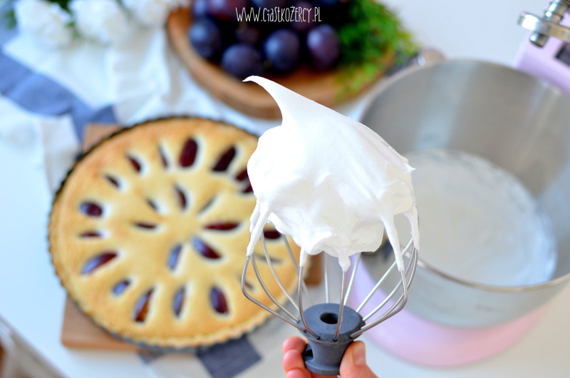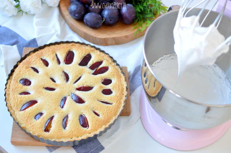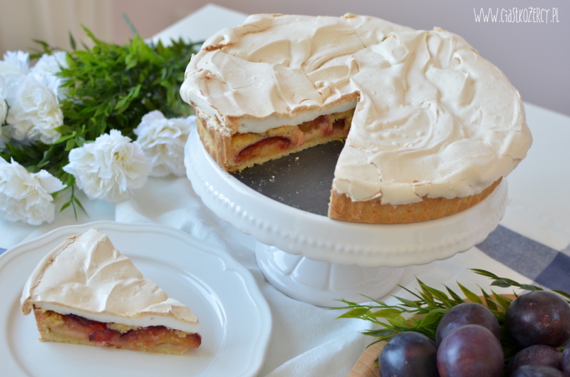 Taki deser zdecydowanie jest w stanie poprawić nastrój nawet w najbardziej deszczowe popołudnie. Jeszcze ciepła aromatyczna tarta ze śliwkami na kruchym spodzie z delikatną bezą :) Tak sobie myślę, że lody też by tu pasowały. A co! jak szaleć to szaleć ;)