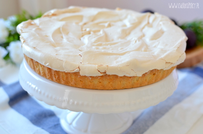 Tartę piekłam w foremce z wyciąganym dnem (bardzo ułatwia wydostanie gotowego ciasta, tak żeby nie zrujnować bezy) o średnicy 25 cm.