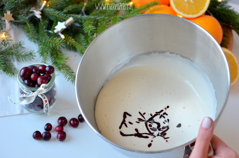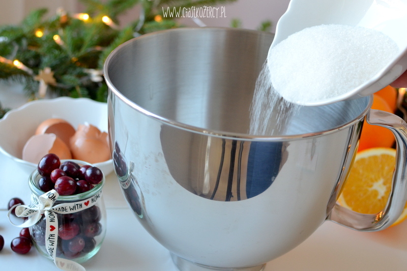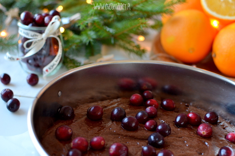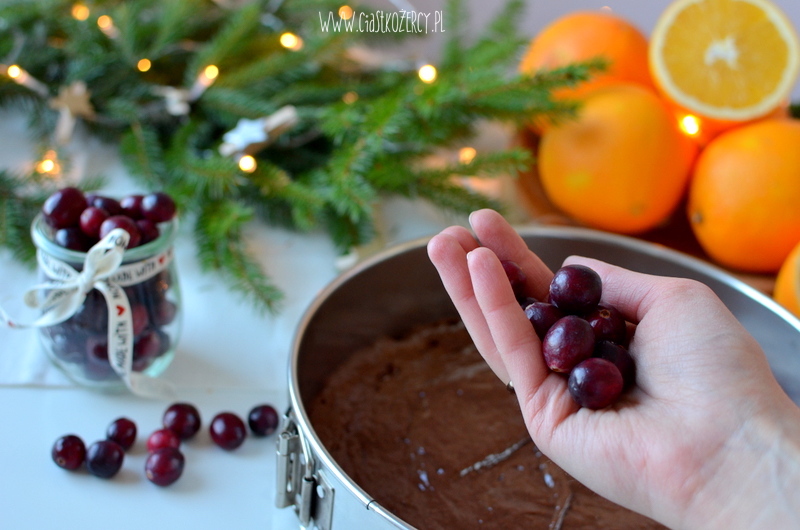Masę przekładamy do tortownicy wyłożonej na spodzie papierem do pieczenia. Posypujemy świeżą żurawiną. Pieczemy ok. 40 min. w piekarniku rozgrzanym na 180 stopni.