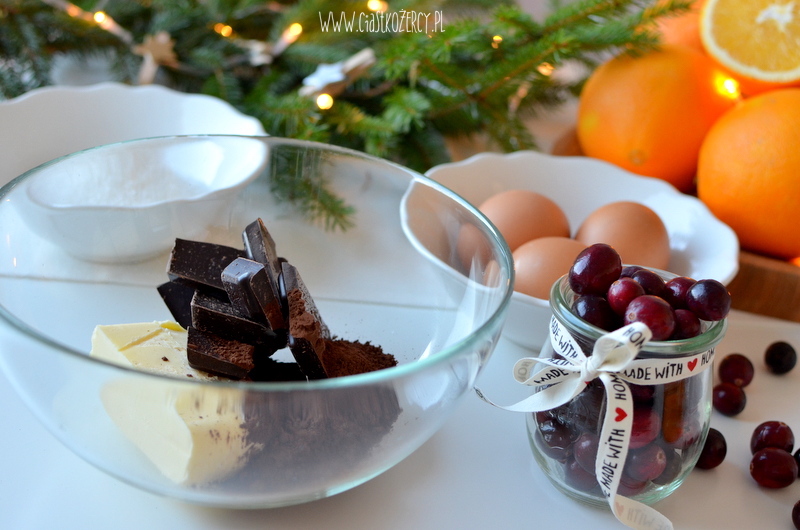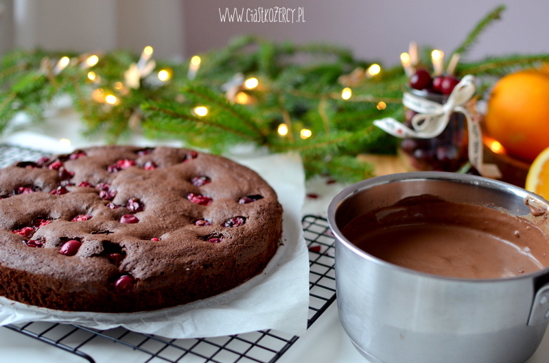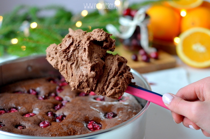 Czekolada, pomarańcza i świeża żurawina – ostatnio jestem naprawdę zakochana w tym połączeniu. Dziś mam dla Was pyszny, aromatyczny torcik czekoladowo pomarańczowy, który przygotowywałam z myślą o urodzinach mojego taty. Ciasto piekłam w tortownicy o średnicy 24 cm, jego podstawa to zbite mocno czekoladowe brownie z dodatkiem kwaśnej świeżej żurawiny, do tego czekoladowo-pomarańczowy krem i pomarańczowa galaretka – dla mnie bomba!
